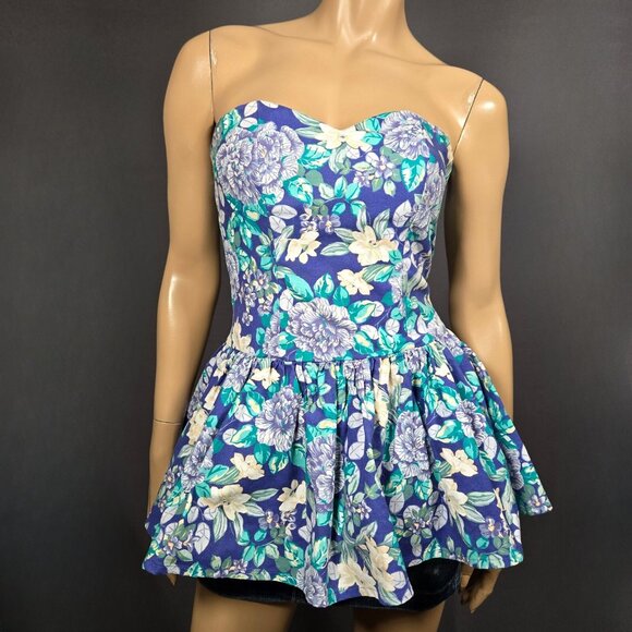 Vintage 80s Laura Ashley Blue Floral Peplum Top Size XS Upcycled Fairy Romantic