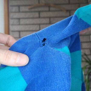 Vintage 80s 'Le Tigre' navy/turquoise striped long-sleeve rugby shirt men's XL