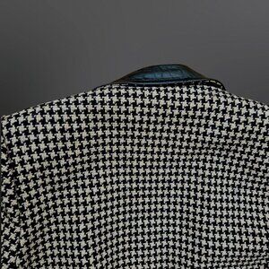 Vintage 80s Long Houndstooth Coat Womens Size M Black Beige Leather Collar