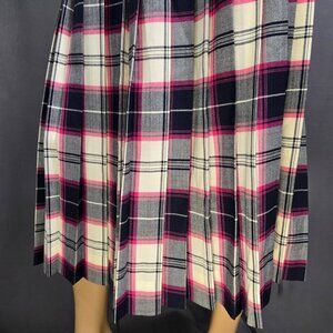 Vintage 80s Long Wool Pleated Plaid Tartan Skirt Size S Blue Pink White
