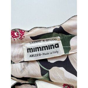 Vintage 80's MIMMINA Ivory Red Floral Striped Beaded Silk Crepe Dress, Size S