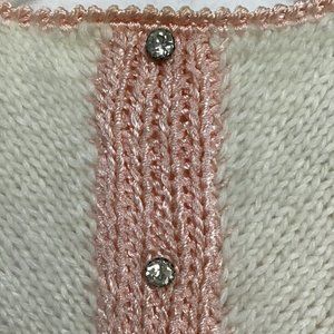 Fabulous vintage sweater with rhinestone detail down the front, pleated shoulders with shoulder pads, keyhole opening in the back. Braided knit in V shape on front.