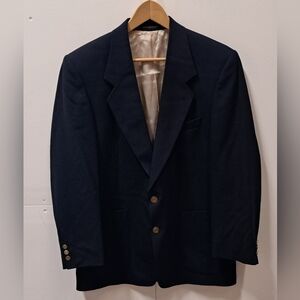Vintage 80s Men's Sport Coat Jacket Canvas Navy Gold Buttons 2-Btn Canada Sz 40R
