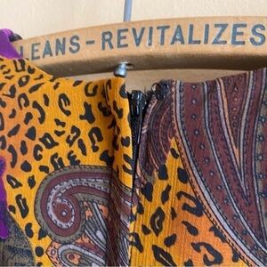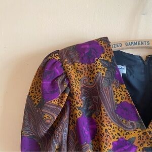 Vintage 80s Nu Mode V Neck Faux Wrap Back Zip Animal Print Shoulder Pads Size L