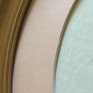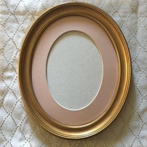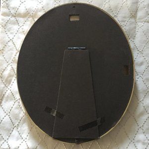 Good preowned vintage condition 80s gold-brushed, plastic oval frame with pale pink oval mounting from the early 80s. Such a cool vintage piece. The backing is a little tricky, but there are tabs to keep the backing in place and flush with your personal artwork or photo. There is some wear from removal and reinsertion; but backing can easily be replaced with low-acid/acid-free stock. Backing features both a tab for hanging and a stand for balancing at a desk or mantle. There are some faint marks on the matting, but they are barely perceptible (please see photos). A rare and difficult size and shape to obtain. Perfect for displaying animal artworks by your favourite illustrator or artist. Example: I would recommend AlbinoJackrabbit on Etsy. No glass. I think it originally came with some sort of matte screen, but not sure where it is now. It's very old and has undergone many moves.