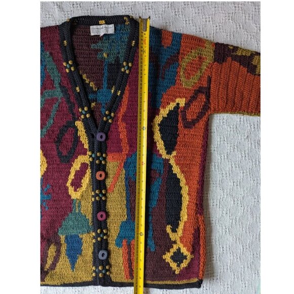 Vintage 80s PERUVIAN CONNECTION Oversized Merino Wool Knit Cardigan Size S/M/L