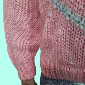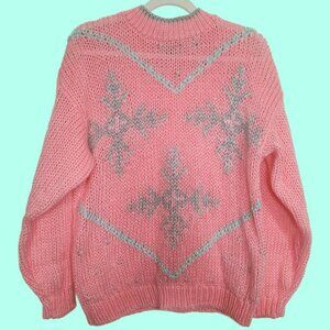 Vintage 80s Pink Glitter Snowflake Sweater Womens M Pastel Christmas Holiday