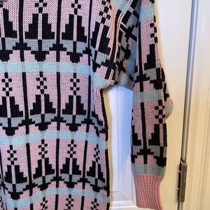 Vintage 80’s Pink Gray Black Art Deco Dressy Tessy Sweater w Shoulder Pads Sz S