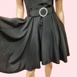 * Vintage 80's black big shawl collar belted circle/swing dress