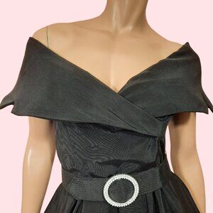 Vintage 80s Prom Party Cocktail Dress Womens Size S Belted Off Shoulder Retro