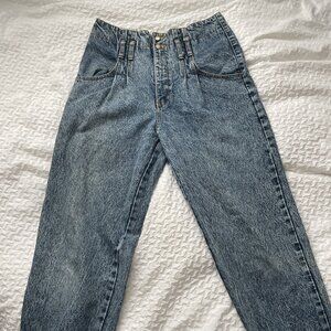 They are in great condition considering their age, no rips, major fraying, etc. There is minor staining on the inside of the waist.