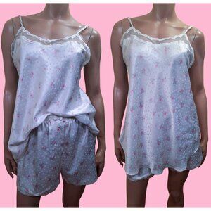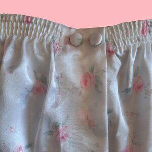 Vintage 80s Satin Nightgown Shorts Set White Polka Dot Pink Roses Floral Size M