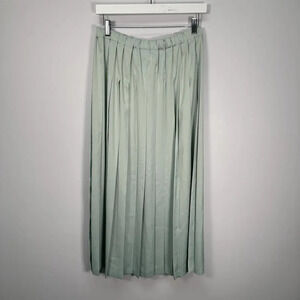 Vintage 80s Seafoam Pastel Green Pleated Midi Skirt Large