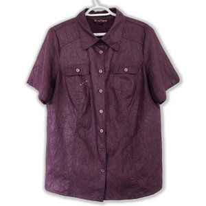 Vintage 80s Short Sleeve Wrinkle Texture Blouse