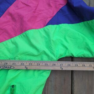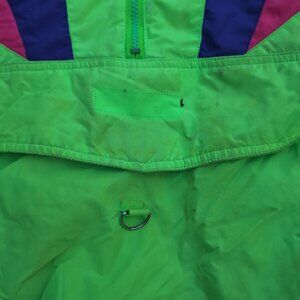 Hit the slopes in retro style with this vintage 80s ski jacket. This vibrant jacket features a bold green color, a classic zip-up design, and a cool stand-up collar. The distinctive kangaroo pocket adds both style and functionality, making it a perfect piece for keeping hands warm. A fantastic find for anyone who loves retro fashion or wants to add a nostalgic touch to their winter wardrobe.