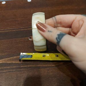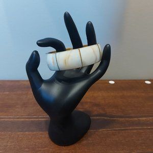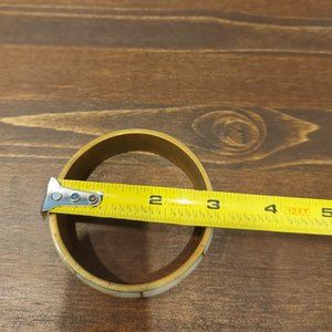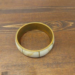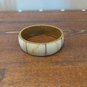 Bangle is quite unique utilizing both Gold Toned metal and plastic or shell (I'm not sure which). Gently used, light surface scratches may be present consistent with age.