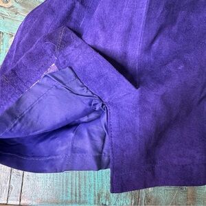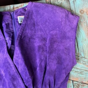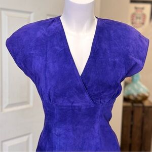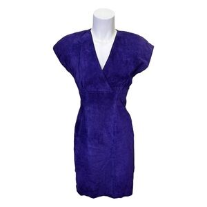 Vintage 80s Suede Leather Purple Bodycon Vneck Mini Dress