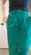 Vintage 1980s Runaway Bay 100% Suede Leather Bright Emerald Green Balloon Leg Pants. Made in Canada. flattering v-seam on the front and back, giving a slight western feel. the balloon leg is from multiple pleats at the front v seam, and come down into a straight leg. fully lined but the lining is not attached at the hem.