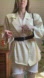 Vintage oversized open front blazer. Large exaggerated dramatic shoulders, padding can be easily removed. Beautiful soft buttercream yellow. Nice drapey fit, open front. One front slit breast pocket. Has a large pleated seem down the back. 100% wool. In amazing condition. Size Large.
