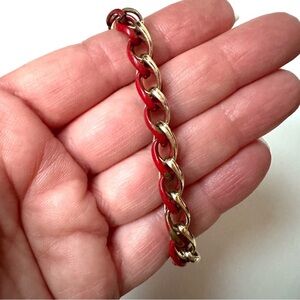Vintage 80's Trifari Red Enamel Gold Plated Woven Layering Necklace - 24 inches. Gold plated with red enamel. A versatile piece that can be worn alone or layered with shorter or longer pieces. Add this statement necklace to your daytime or evening look. See below for further details measurements.