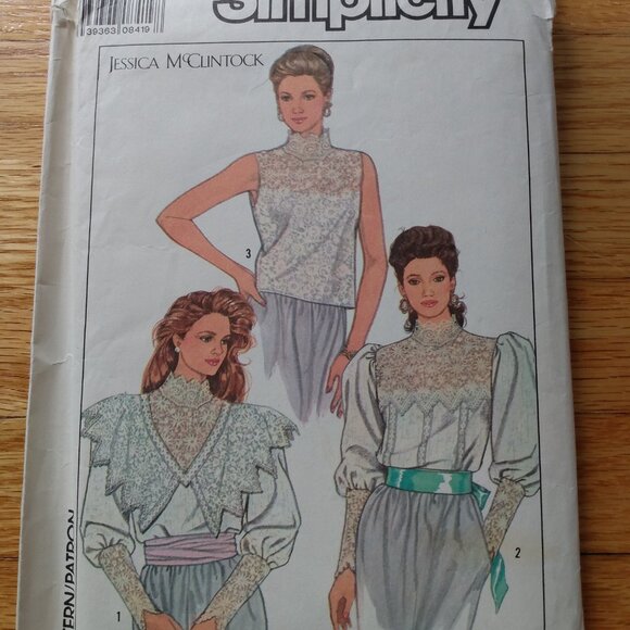Vintage 80s Victorian Lace Blouse Sewing Pattern Size 14 Jessica McClintock 9025