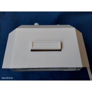 Body is beige plastic, cover is clear plastic. There are a few scratches and some scuffing on the clear front. The clock has been tested. It keeps time, buzzed at the desired time and the drowse function works. There is a low hum when the clock is operating. Cord is 36 inches long.