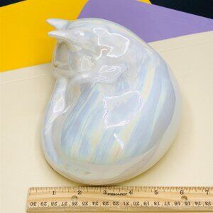 Vintage White Pearlescent Ceramic Sleeping Cat Figurine
