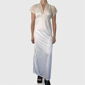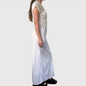 Vintage 80s White Slip, 1980s Lace Nightgown Dress