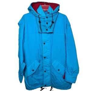 Vintage 80s Wind Rain Nylon Jacket Size Medium Large Blue Red Retro Bay Club