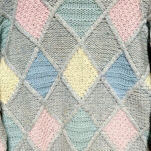 Vintage 80’s Wool Patchwork Chunky knit Pastel Sweater Womens M