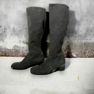 Vintage 80s Yves Saint Laurent gray wool felt square toe knee high boots 6