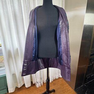 Vintage 80s blazer, purple, teal knit, leather lapels, waist band & cuffs, 10/12