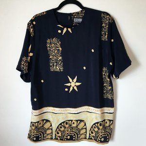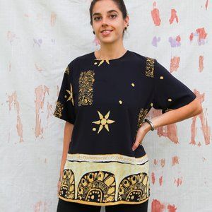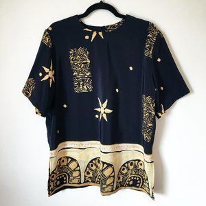 Vintage Desdemona dark blue blouse with amazing flower and sunshine print. In great condition. Shoulder pads have been removed.