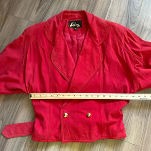 Crafted from genuine suede leather, this bold red jacket features a chic double-breasted front with gold-tone buttons that add a touch of glam. With its oversized fit and statement lapels, it’s the perfect piece to level up any outfit. If you love vintage with a pop of color, this one’s calling your name