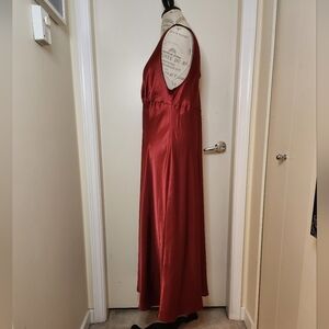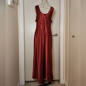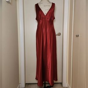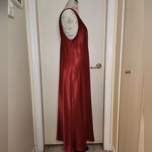 Luxurious opulent Burgundy Red Satin Deep V Sweetheart Neckline Contoured Néglige Maxi Evening Dress Nightgown, by DIAMOND TEA.