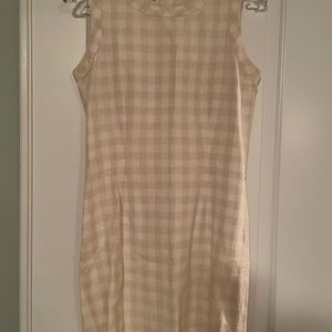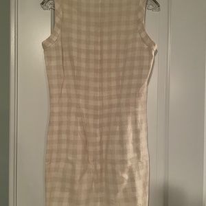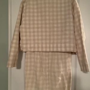 Vintage (80s) neutral linen check shift dress with boxy jacket, 60s silhouette