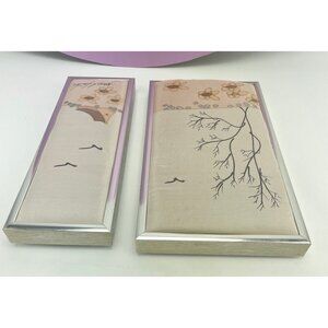 This is a diptych, an ensemble of two panels creating this lovely winter scene with soft muted 80s pink/peach colors. Silver tone metal framed over a soft cushioned cardboard. There is a signature however I cannot make the last name.