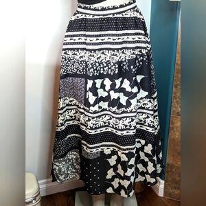 Vintage , 80s peasant maxi skirt, lined black & white patchwork, size M