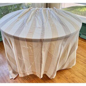 Made in Canada by Riverdale Fabrics, the panels are a soft mesh, in a striped vertical pattern. Colors are a bit difficult to render on the camera, they are almost blush pink, soft tan and cream stripes.