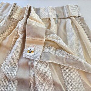 Vintage 80s pleated curtain, cream, tan, striped Riverdale fabric, per panel