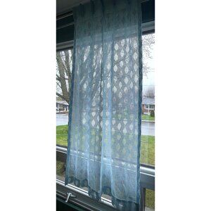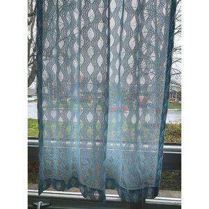 Vintage 80s pleated curtain, light blue mesh, net woven, single panel