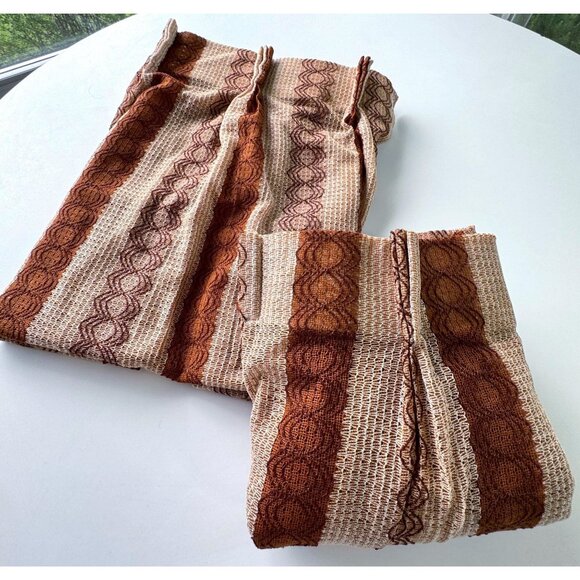 Vintage 80s pleated curtain, tan, brown, rust vertical stripes, per panel