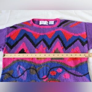 80s purple and pink abstract knit sweater