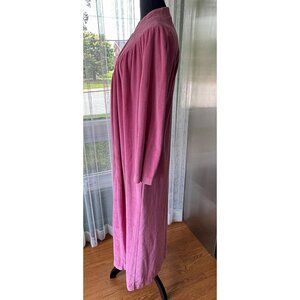 Vintage 80s robe, dusty rose pink velvet bathrobe, long sleeves front sipper