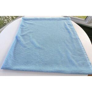 Vintage 80s shower curtain, powder blue wide mesh open weave pattern, decorative