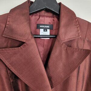 Vintage 80's silk coat, Mikane Metallic burgundy, rust, brown, lined,
