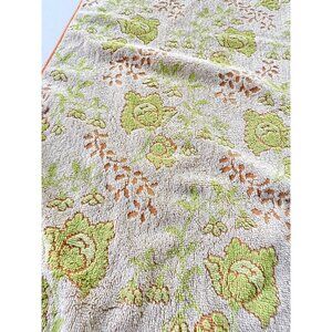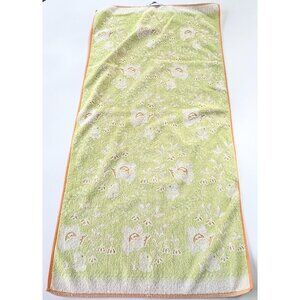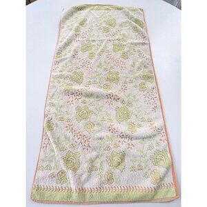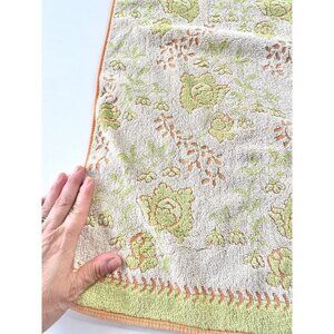 Vintage 80s small bath towel, mint green and peach floral towel, reversible