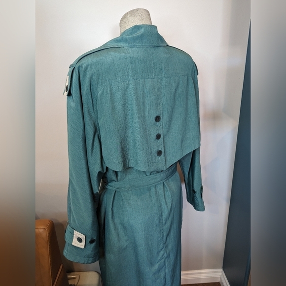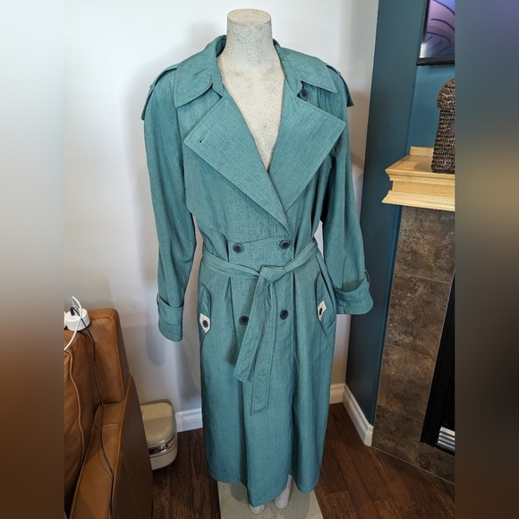 Green Trench Coat, 80s Full Length Trench coat, Sage Green Dress Coat, Vintage Green Raincoat, plus size vintage Jacket