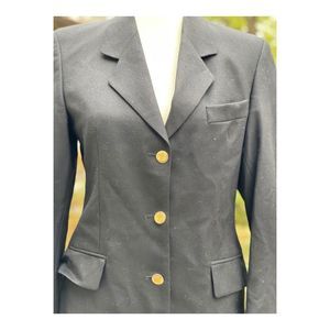 Missing size on tag. Approx size M based on measurements. 100% Wool. Gold tone metal buttons, 3 button single breasted front closure. Shoulders are padded inside lining. Notched collar neckline. Left chest pocket and two front flap closure pockets. 3 button decorative at sleeve cuffs. No stains, holes, tears or pilling noted. Fully lined in satin. Pet and smoke free home.