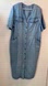 This is a pre-owned, vintage light blue denim midi dress. It features a V-neckline, short sleeves, and a full-length button-down front with decorative buttons.